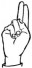 На ћирилици написано МАКСИМ ГРАБОВЧИЋ састоји се из 15 слова [?]. Исписано ћириличном једноручном азбуком за глувонеме: